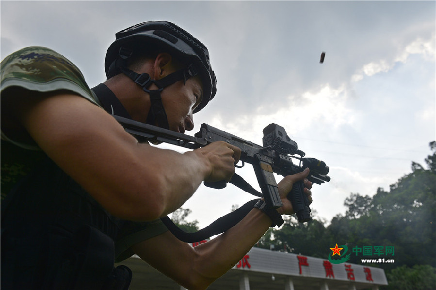 这一系列让人眼花缭乱的动作大片在广东省深圳市银湖山训练基地上演。5月23日,驻守粤港边海防一线的武警广东边防总队机动支队组织反恐中队开展枪械应用射击比武竞赛,锤炼反恐尖兵“一招制敌、枪枪毙命”的战斗硬功。