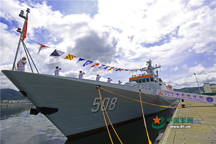 6月8日上午,新型护卫舰——曲靖舰入列命名授旗仪式在海南三亚某军港举行。随着鲜艳的八一军旗首次在曲靖舰上冉冉升起,标志着该舰正式加入人民海军战斗序列。